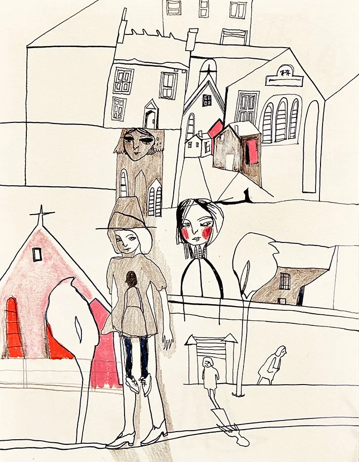 sketchbook image for ‘cofio pan’ & ‘cariad bach’ cartridge pen, pencil and Stabilo crayon